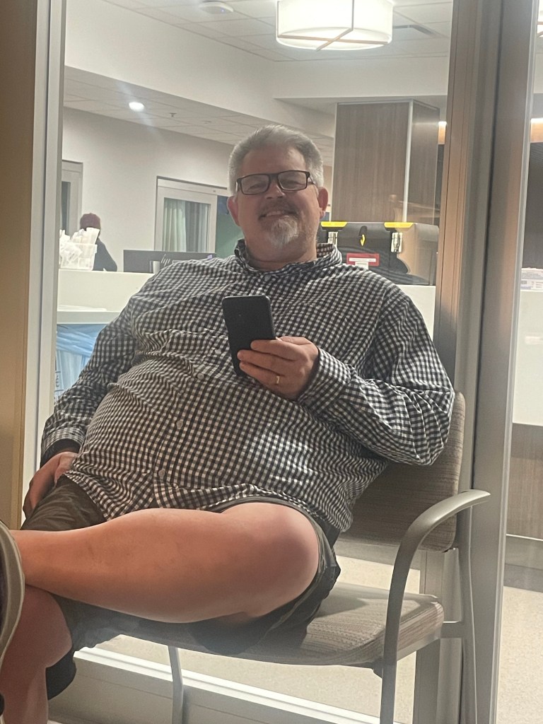 I am also not a fan of well-intentioned people who see me and tell me I look so good that they would never know I have cancer. Just what does cancer look like? On my bad days, you don’t get to see me. You don’t see me suddenly have explosive diarrhea when I’m just watching tv. You don’t see me suddenly throw up as I am driving down the road. You don’t see that I carry a bag with extra clothes and baby wipes and ziplock bags whenever I leave home. You don’t see the fatigue. You don’t see the pain. You aren’t there when I get my port accessed with the huge needle. You aren’t there as I swallow chemo pills morning and night, knowing that in the next hour nausea will hit. You aren’t there to see me inside the clanging MRI machine. You aren’t in the exam room waiting for the latest test results. You don’t see my heart break as I wonder if this is my last “whatever” (Christmas, birthday, etc). When you talk about your job you don’t see my heart twist because it was not my life goal to be on SSDI at age 56 because I am completely disabled. When you speak of retirement dreams, I die a little inside realizing the chance of me living to age 65 is slim and, if I do, I will have no savings because I cannot work and our medical bills are large. Dave sees all of me, the good and the bad. He is there for all of it. Our children are also there in the trenches with me. My lab, Madi, also gets the real me. She listens attentively, never says the wrong thing, and loves me even on my most unlovable days. We should all try to be more like her.