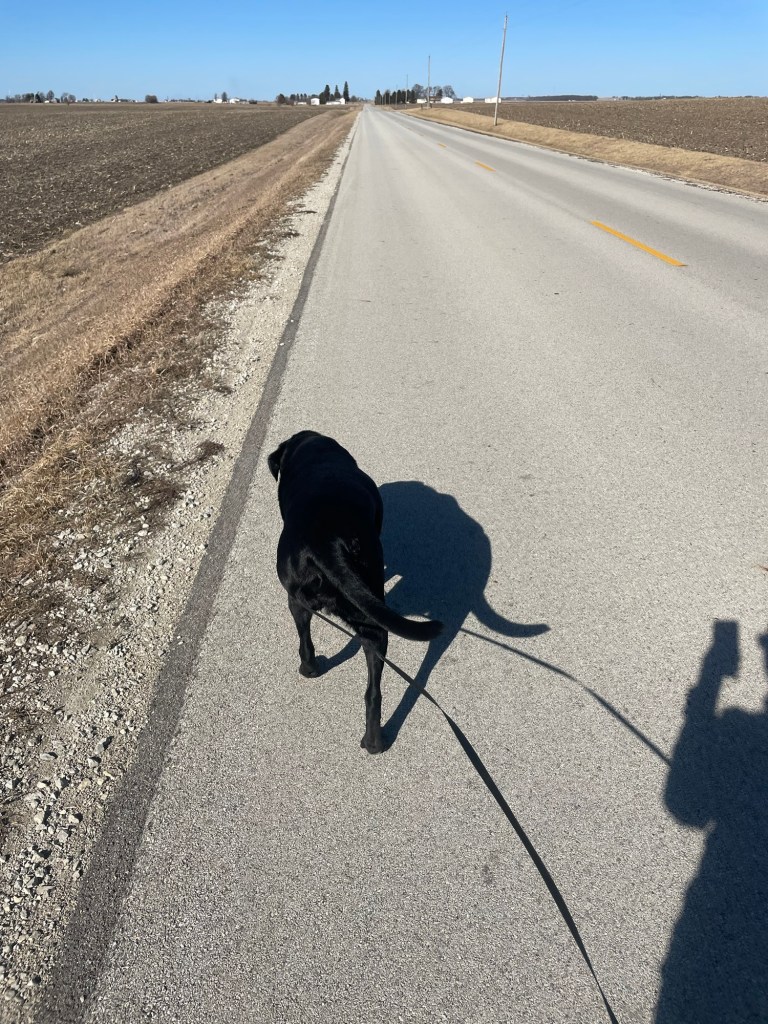 When we reach our long gravel lane, I turn her loose to run home. Today she saw Dave on a tractor in the yard so there was extra speed in her strides.
