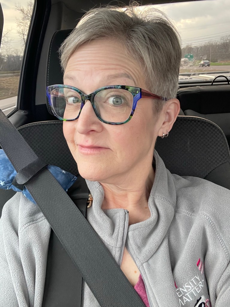 There are two days left of this month and one more medical appointment. I don’t have to return to St Louis until Feb 17 and I’m thankful for the reprieve. I have a temporary crown on my molar and digestive issues have been much lighter the last week. I also got to see all three of our adult children in the last week, which makes my heart happy. It’s still daylight and we are already on the way home. I expect to get home to Madi Moo around 8:00 pm. Two of our kids split dog-sitting duties today so I know she does not miss us at all.