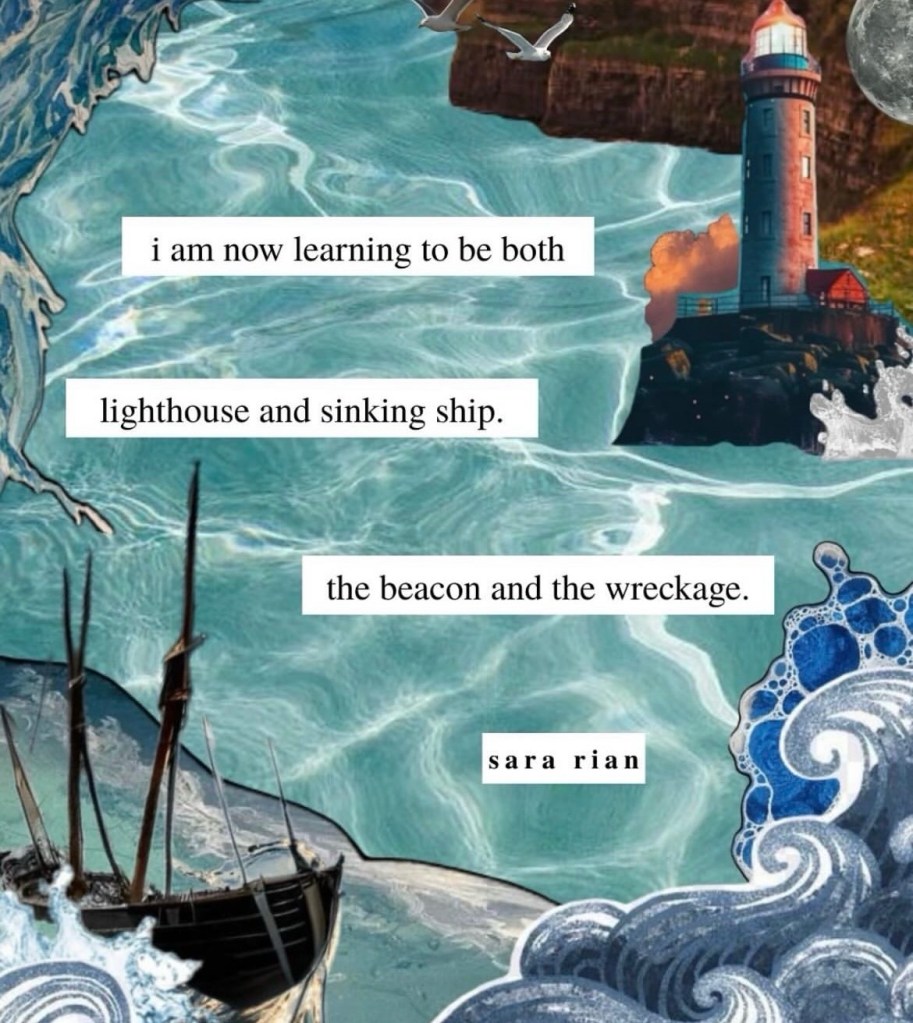 I started this cancer journey with the scary realization that I am in control of nothing – hence the title of the whole blog, “I am NOT in Control.” I have developed a closer relationship with God. I talk to God so much in the normal course of a day. I swear at God. What the eff, God? Seriously, God? God, give me the words. God help me put on my big-girl panties today. God, I just cannot. There is too much pain, anxiety and fear to say, smugly, that I am happier and healthier than I was 7 years ago. I see my cancer in the faces of my husband and our three children. I saw it in my mom. But, to use the selection from this poem, I am now learning to be both lighthouse and sinking ship, the beacon and the wreckage.